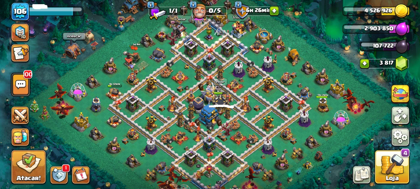 Cv12 Conta Top - 3817 Gemas - 4 Equipamentos Épicos - Clash of Clans