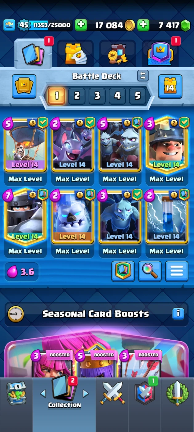 Clash Royale Arena 17, 23 cartas max. +7K gemas