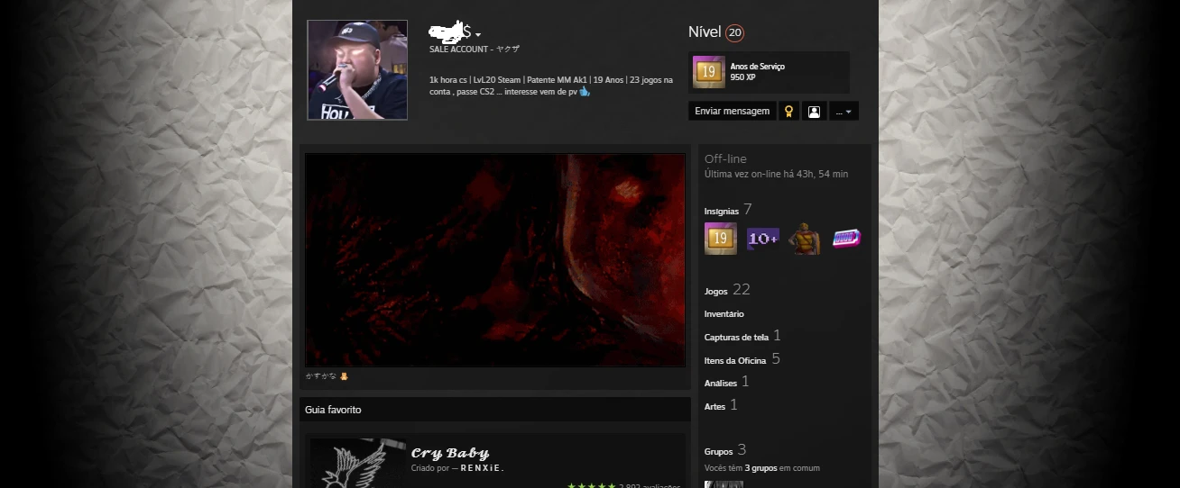 Conta steam 19 anos lvl 20, sem banimentos ou restrições