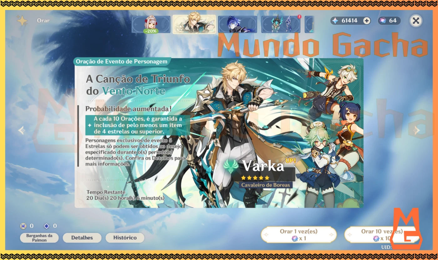 • Banner Atual (Versão 6.4, Fase 1): Varka (Novo) + Flins (Rerun) 🌪️🐺⚡🔱