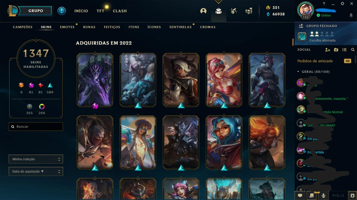Conta LoL com todas skins !1347 SKINS E PAX JAX SKIN RARA !