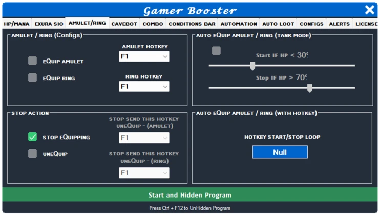 Com o Ring/Amulet você define um ring e um amuleto para ficar equipando toda vez