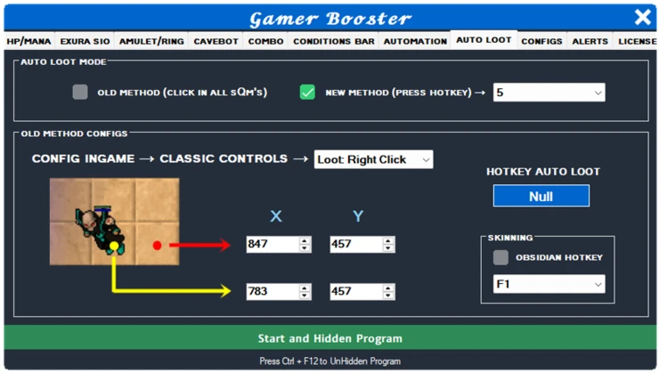 Também é possível configurar para que o Auto Loot use a Obsidian knife no corpo dos monstros de forma automática.