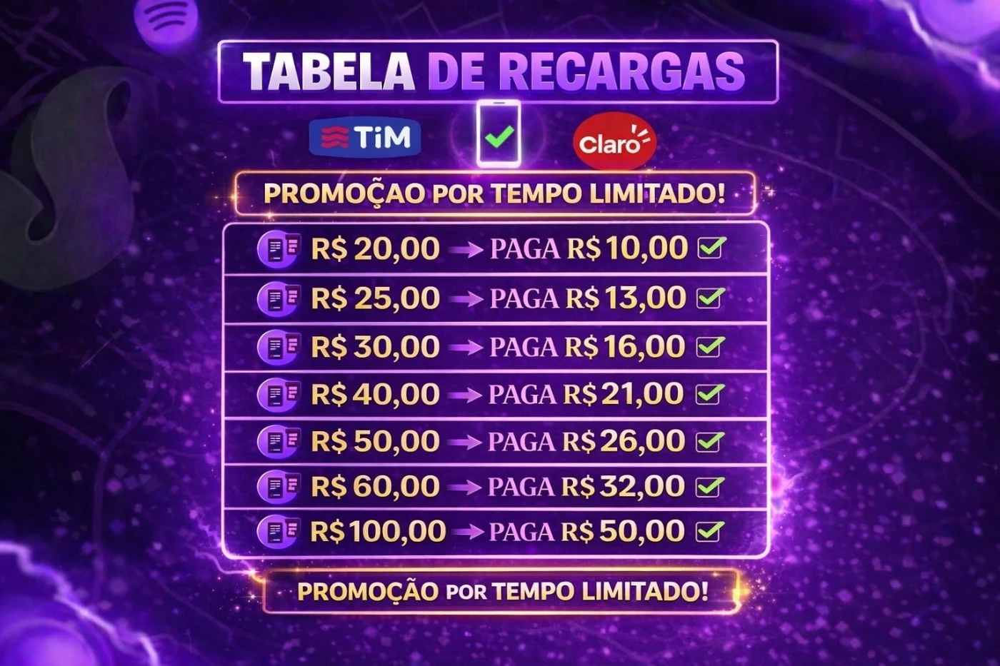 📲 Recargas De Celular 🟦TIM é CLARO🔴 50% OFF revenda onnnn