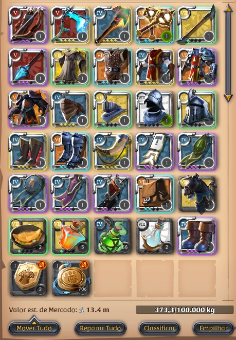 Especialização (Spec) em várias armas e armaduras, permitindo adaptação a diferentes conteúdos: PvP, PvE, Gank, ZvZ e atividades solo ou em grupoConta pronta para endgame, com ótima base econômica, múltiplas opções de gameplay e excelente custo-benefício para quem quer evitar o grind inicial.