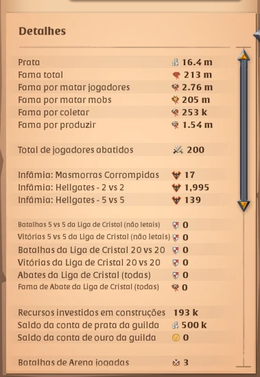 Conta de Albion Online muito bem desenvolvida, com 213 milhões de fama total, ideal para jogadores que buscam progressão avançada e versatilidade no jogo.
