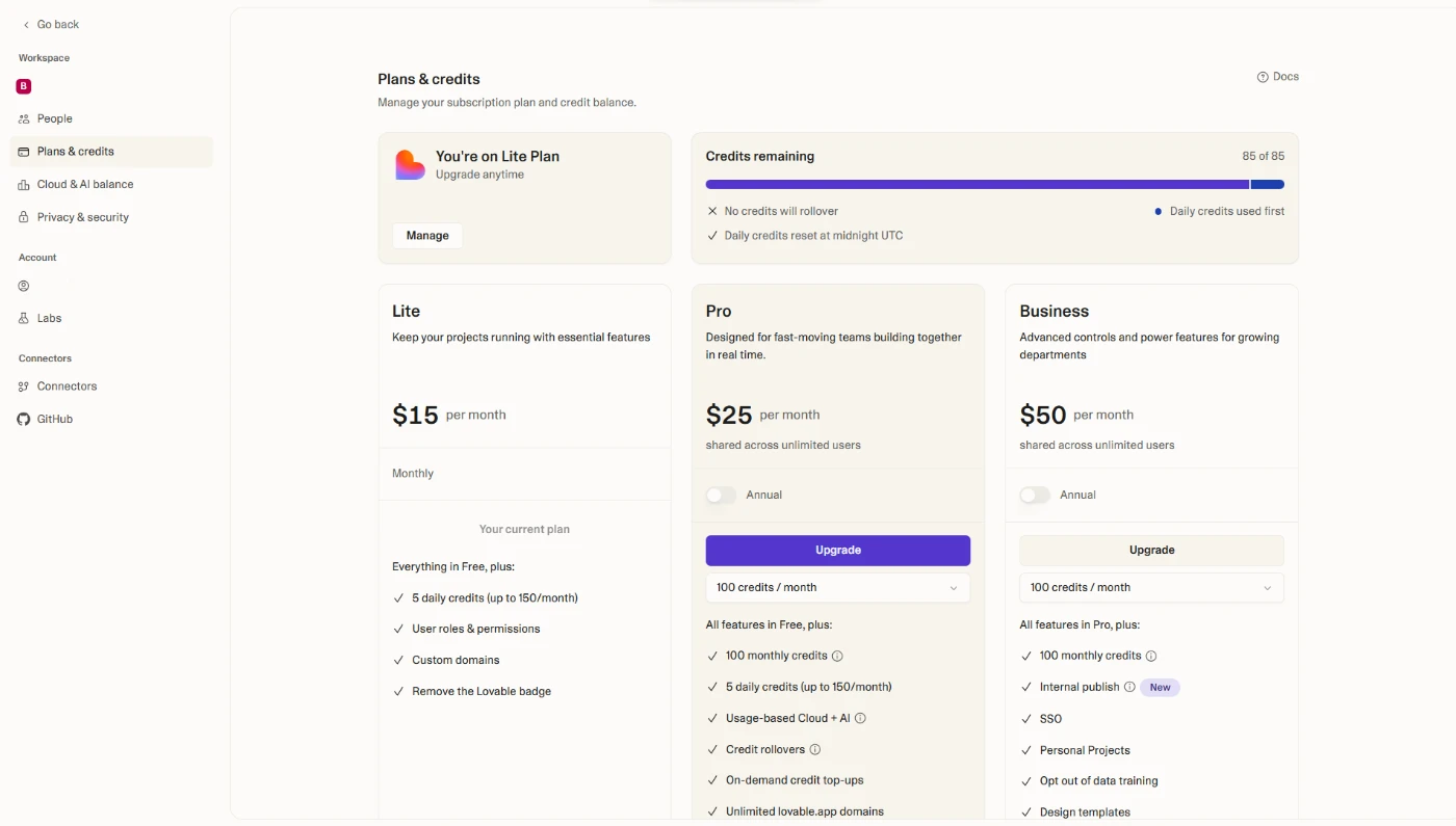 Acesso exclusivo ao Plano Lite da Lovable, criado por nossa equipe, privacidade total e liberdade para criar seus projetos.