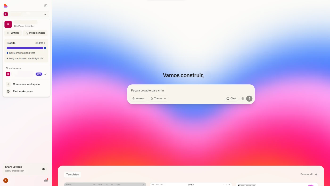 Conta Lovable Com 85 Créditos - Assinaturas e Premium