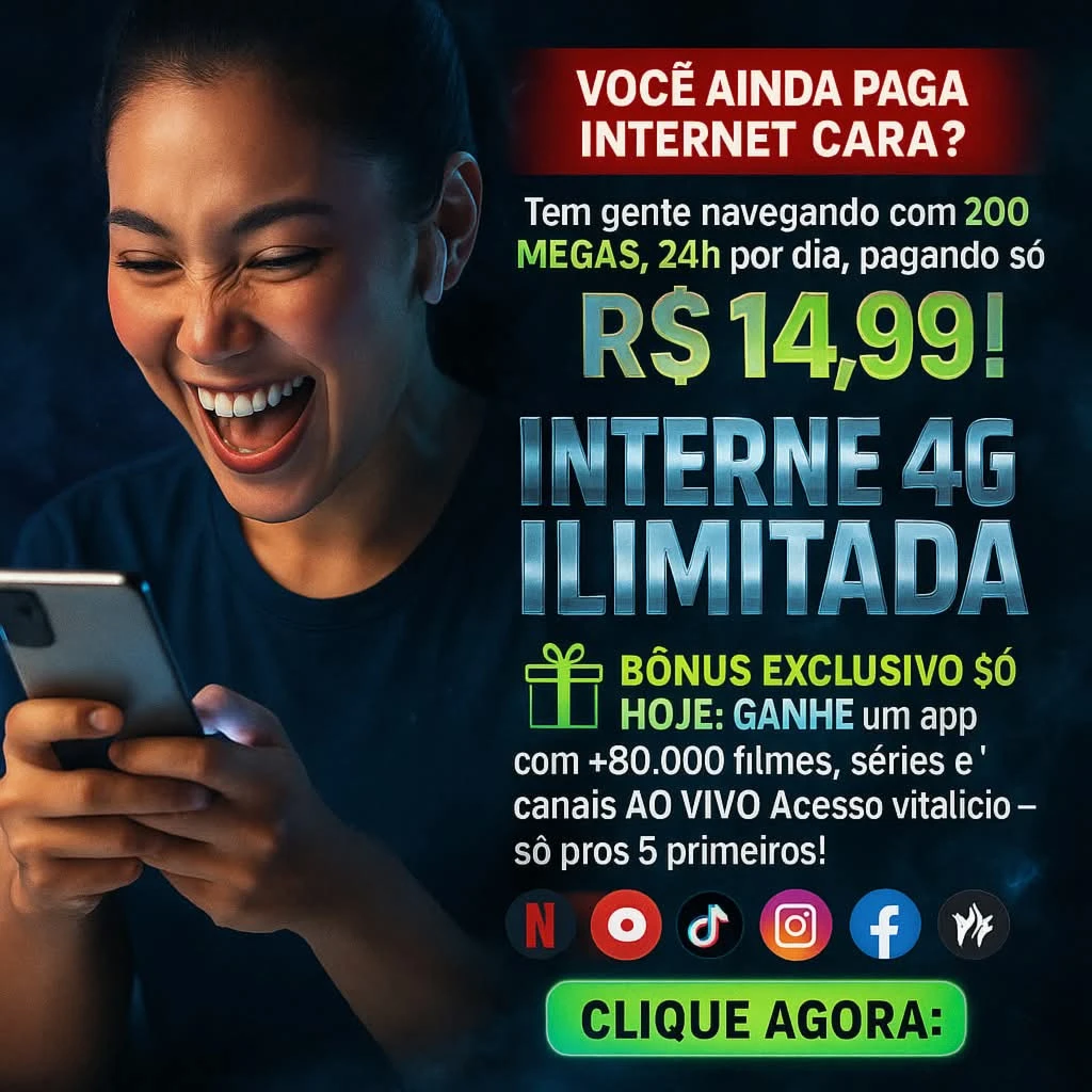 Você vai receber sua internet ilimitada mensal mais um aplicativo com todos os streaming Netflix Disney HBO e muito mais por apenas 14,99 aproveite antes que o link caia