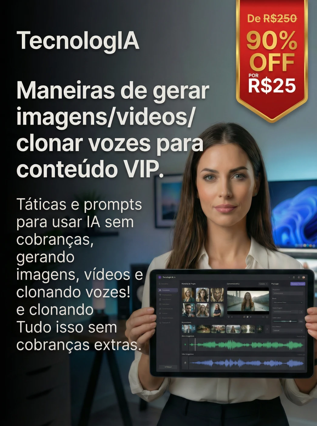 Gere Vídeos, Imagens, Códigos e Clone Voz com tecnologia avançada.