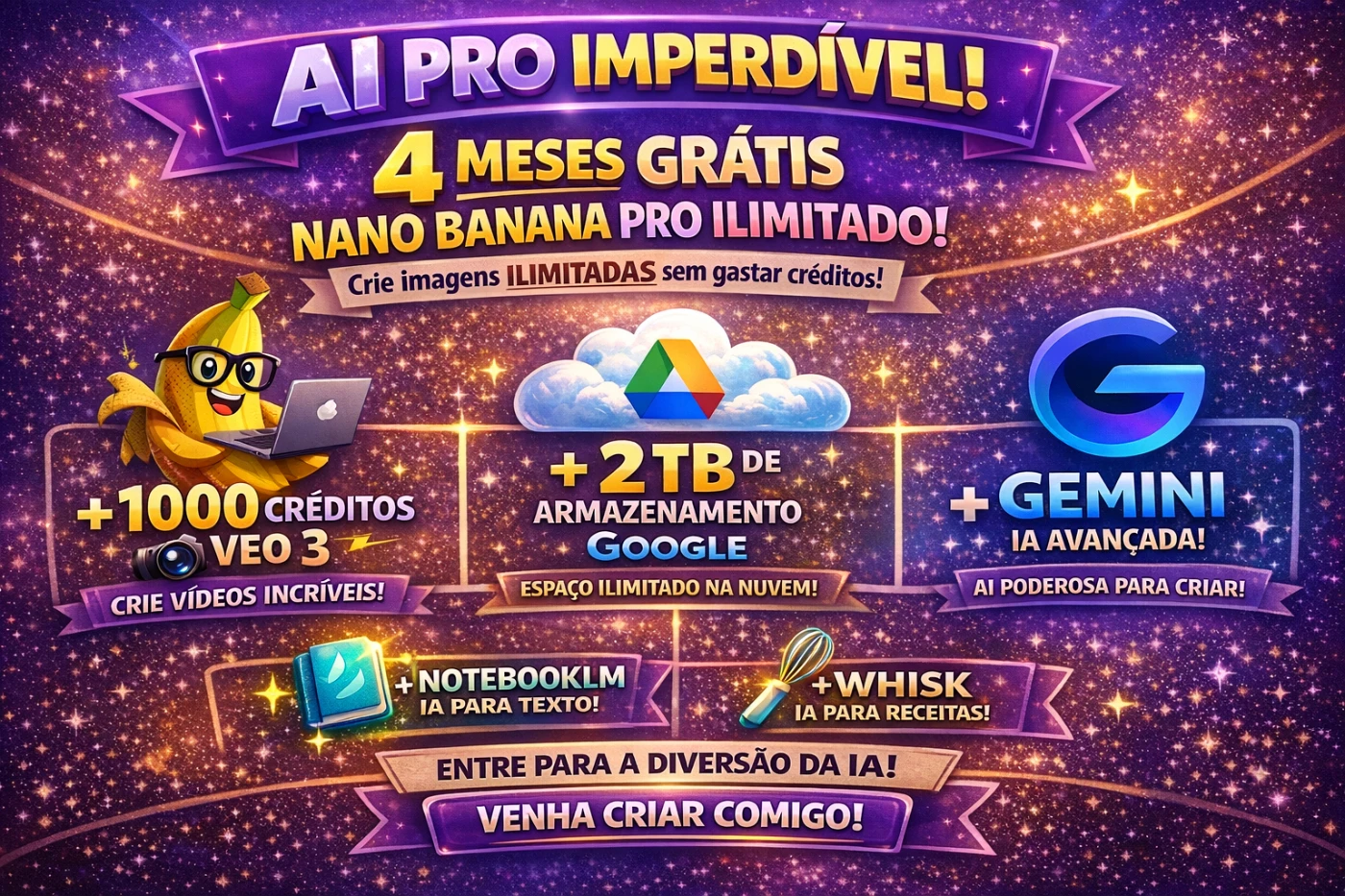 Nano Banana PRÓ (ILIMITADO) - Crie quantas imagens quiser sem descontar dos créditos.