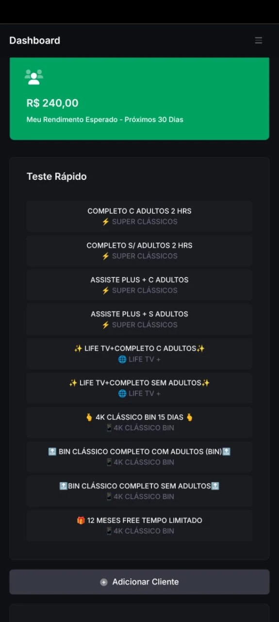 Painel Iptv Completo Com 20 Creditos Com Suporte 24/7!