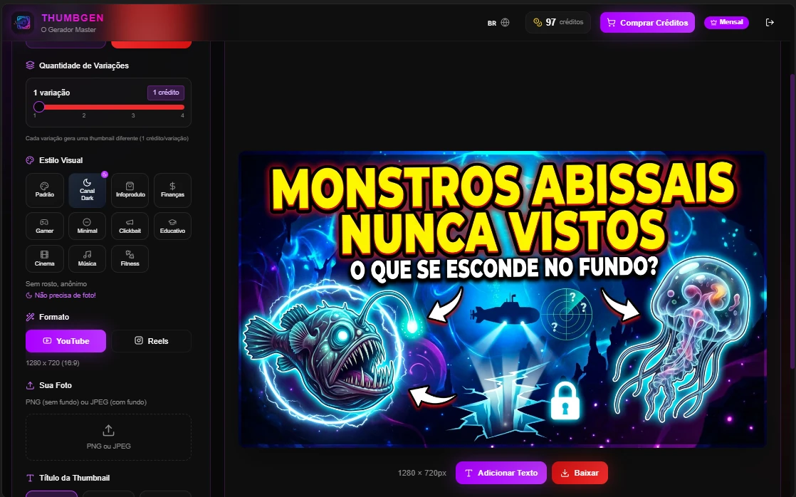 🚀 Thumbgen Ia ⚡ Assinatura Mensal |Crie 100 Thumbs Por 0,59