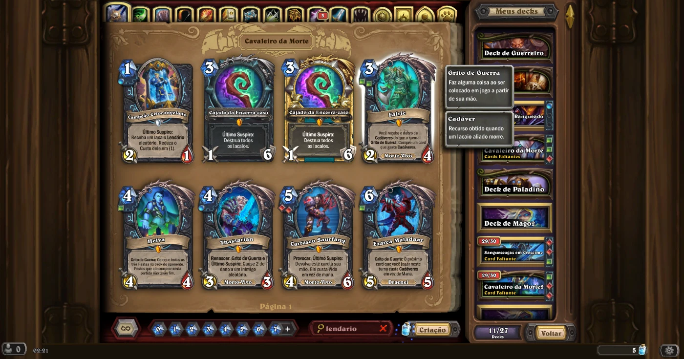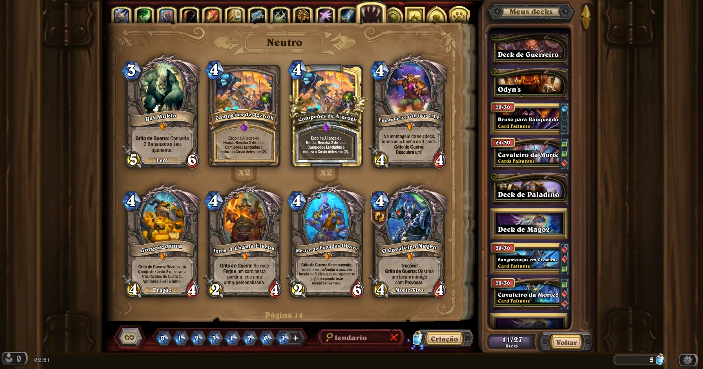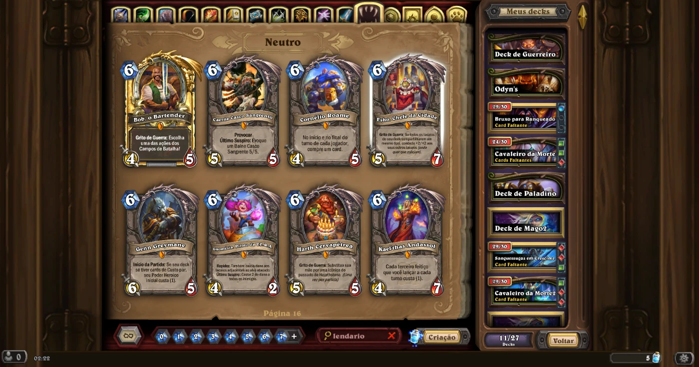 Estou colocando minha conta do jogo Hearthstone à venda. Ela tem 104 cartas lendária, muitas épicas e raras. Até já peguei rank lenda nessa conta. Tenho todos os dados para entregar ao comprador para que possa trocar o e-mail e a senha.