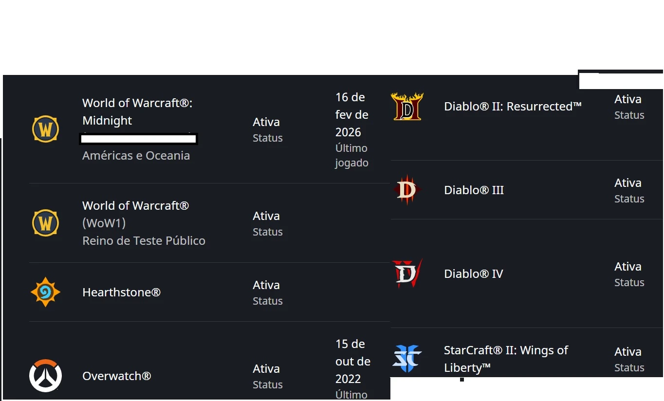 Conta WOW/Blizz antiga 2010 c/Midnight (+D2R,D3,D4)