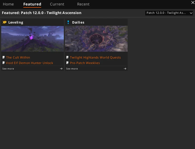 Receba atualizações periódicas automaticamente e tenha sempre a versão mais atual do Zygor, incluindo Retail, Classic, Classic TBC e Classic TBC Anniversary.