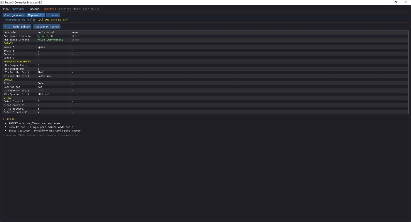 - Mapeamento de teclas interativo e fácil de configurar