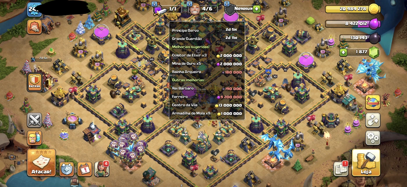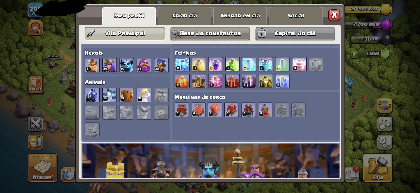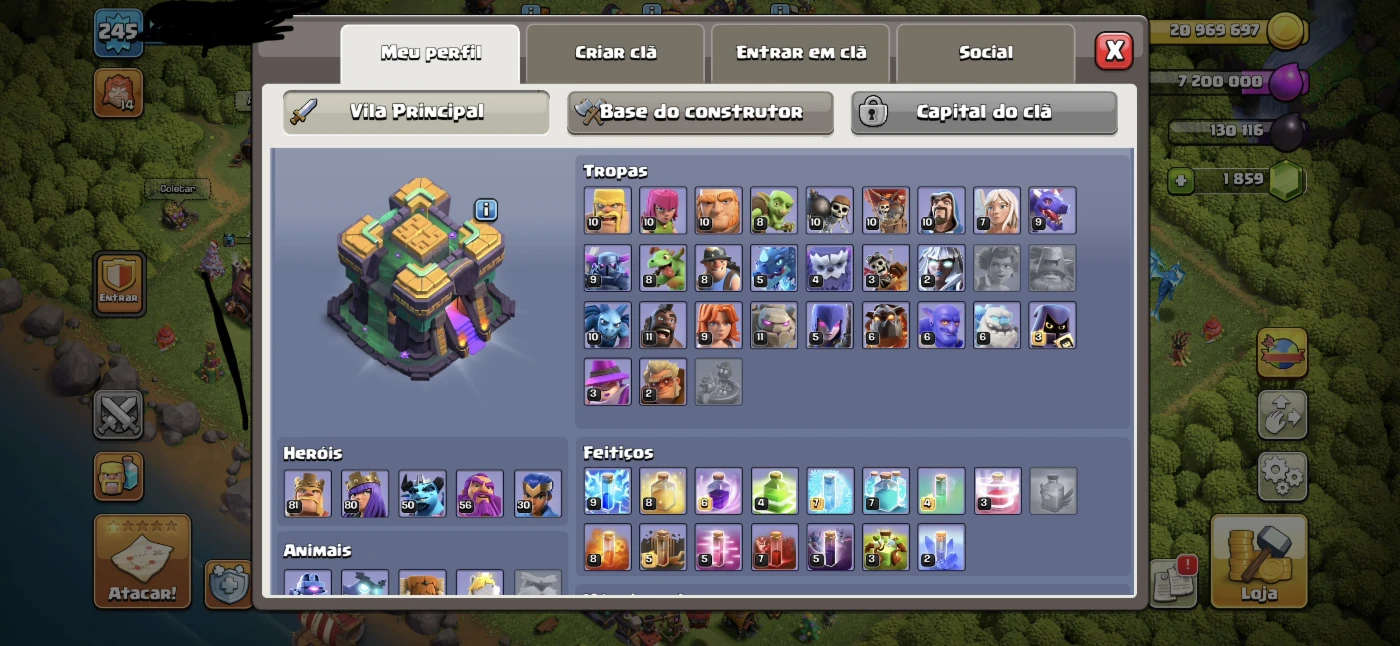 🔹 Tropas e Feitiços: Todas maximizadas, prontas para guerra e push