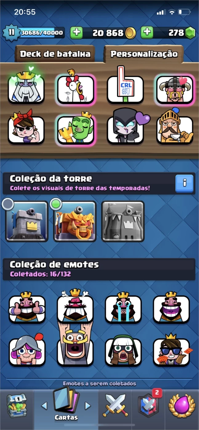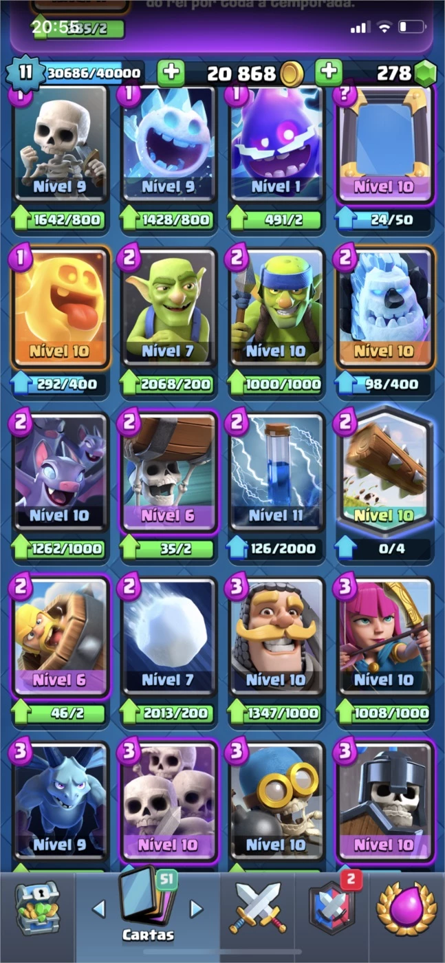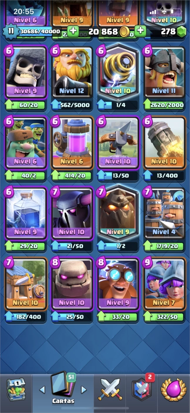 CONTA CLASH ROYALE NV 11 MESTRE 1 TODAS AS CARTAS - Clash of Clans