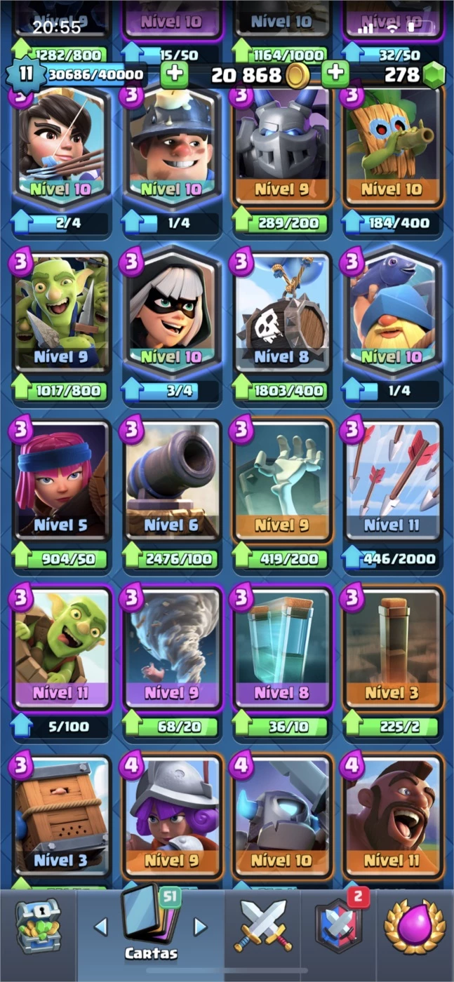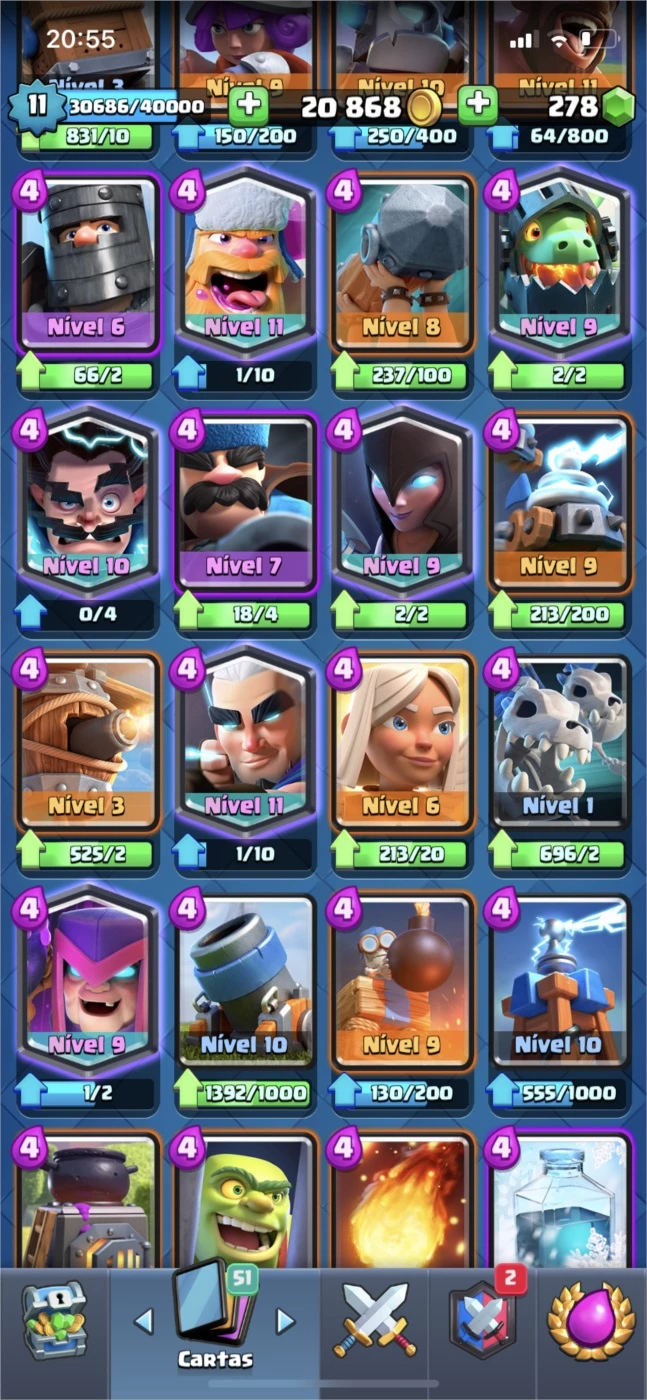 CONTA CLASH ROYALE NV 11 MESTRE 1 TODAS AS CARTAS