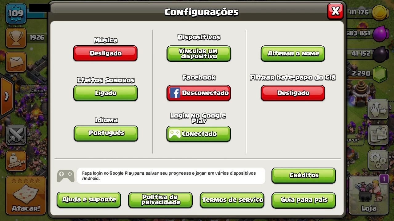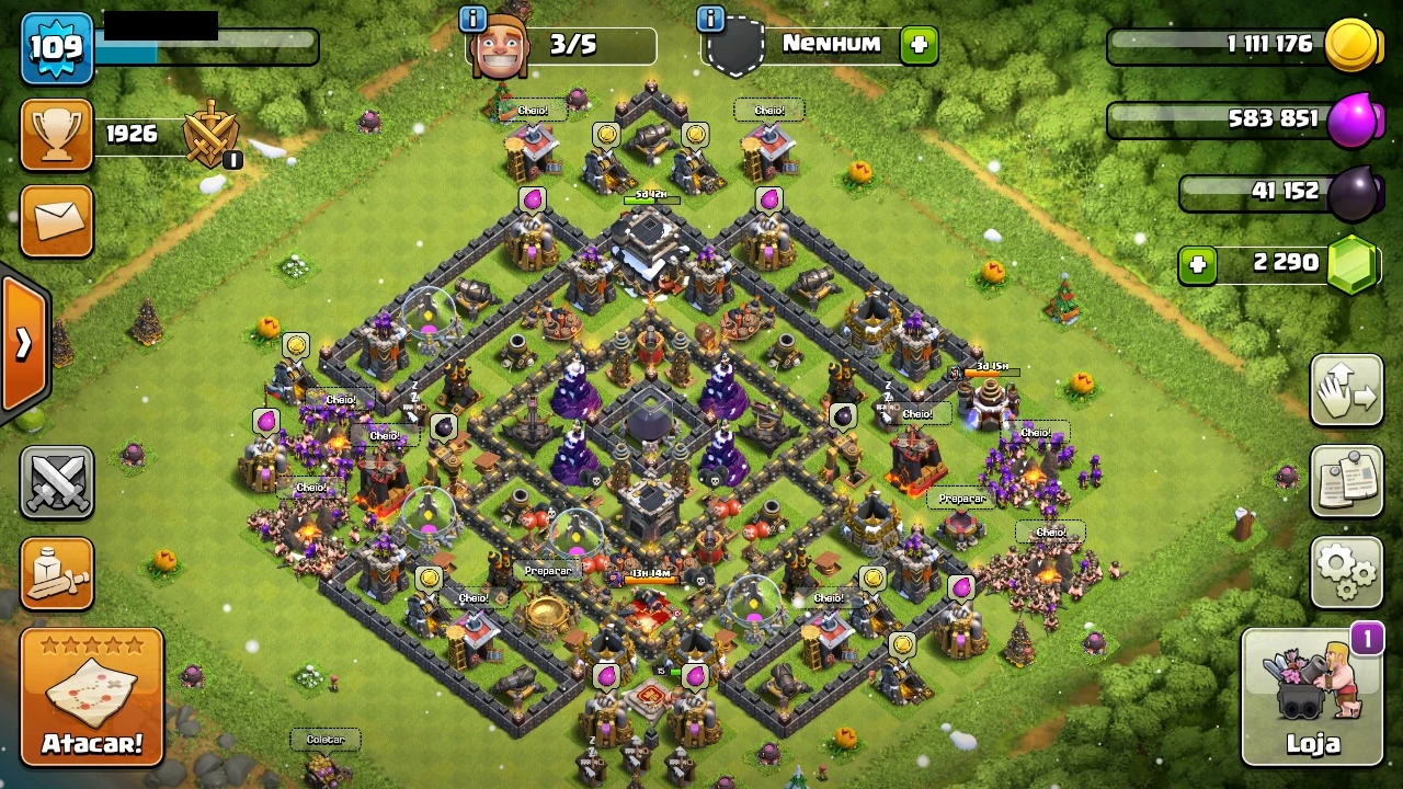Conta LVL 109, Tropas CV9, mudança de nick disponível, 2k de gemas fora conquistas