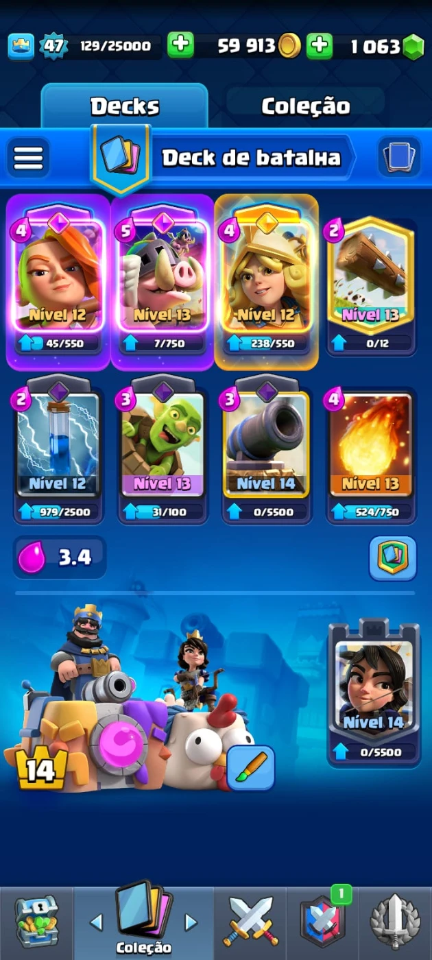 Conta de Clash royale muito competitiva para qualquer arena; Nível 46🌀 9000🏆 2 Heróis sendo o gigante e a mosqueteira + 11 evoluções completas🟣 Muitos emotes raros🌀 Ilustrações raras🌀 Todas as cartas desbloqueadas; Conta bem evoluída, para pegar e jogar sem passar dor de cabeça; Passo a conta para o email do comprador no ato da compra;