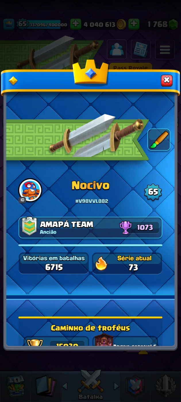 conta de clash royale nvl 65