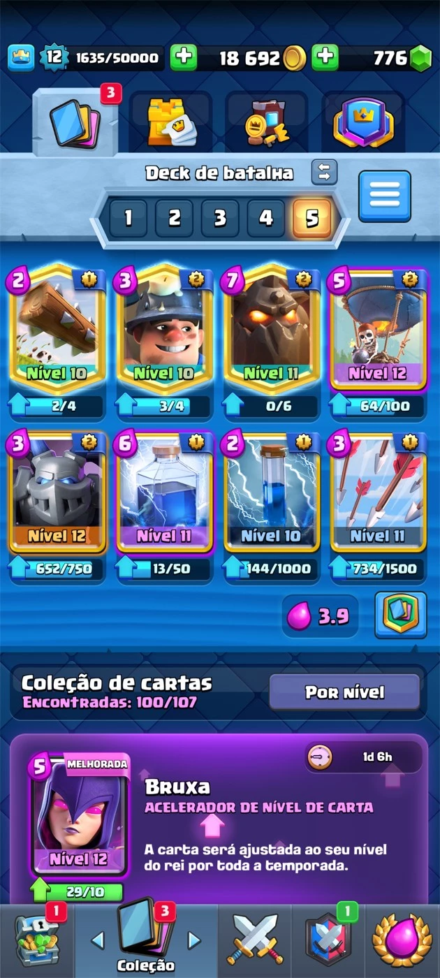conta clash royle. LvL 12, 100 cartas, arena:covil dos patif
