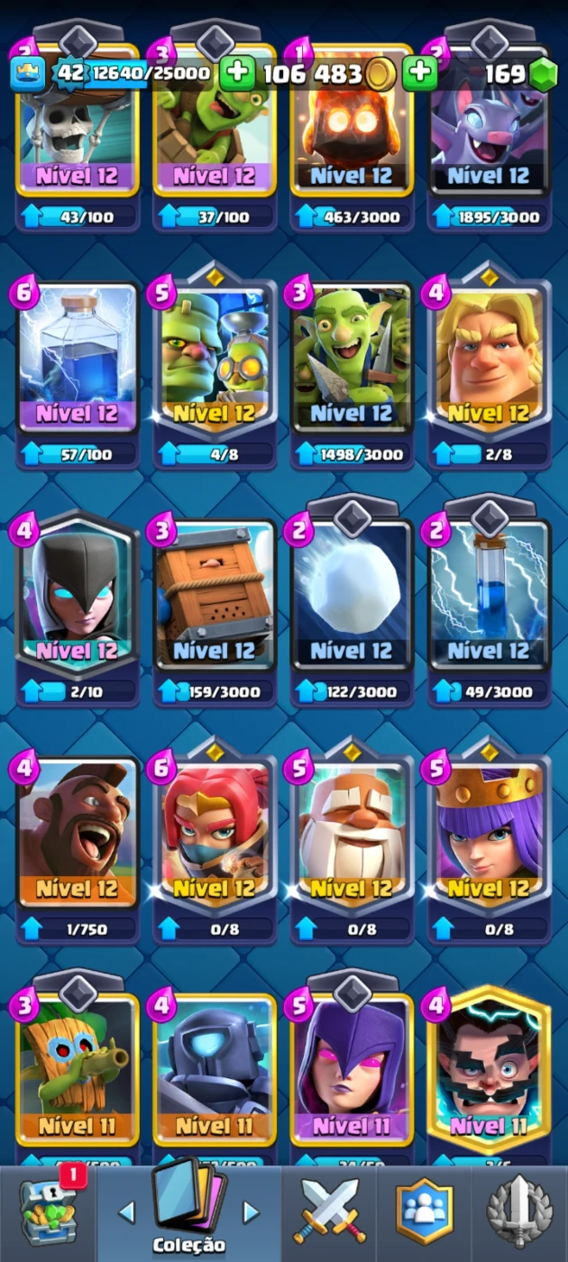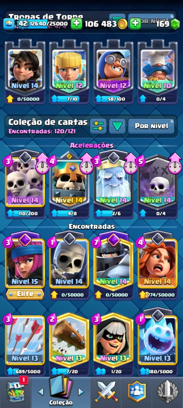 🔥 Conta com várias cartas nível 15 e 14, e as demais bem evoluídas
