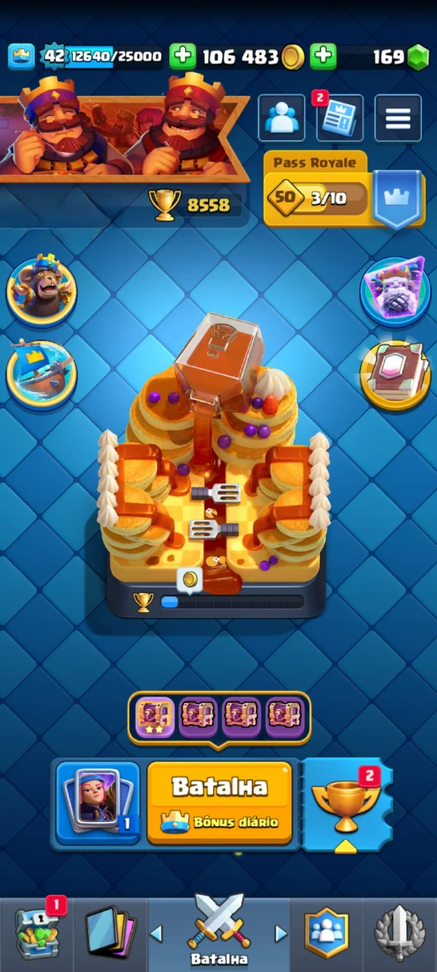 ⚡ Evoluções desbloqueadas: Mega Cavaleiro, Mago de Fogo, Arqueiras e Pirotécnica