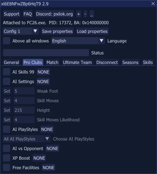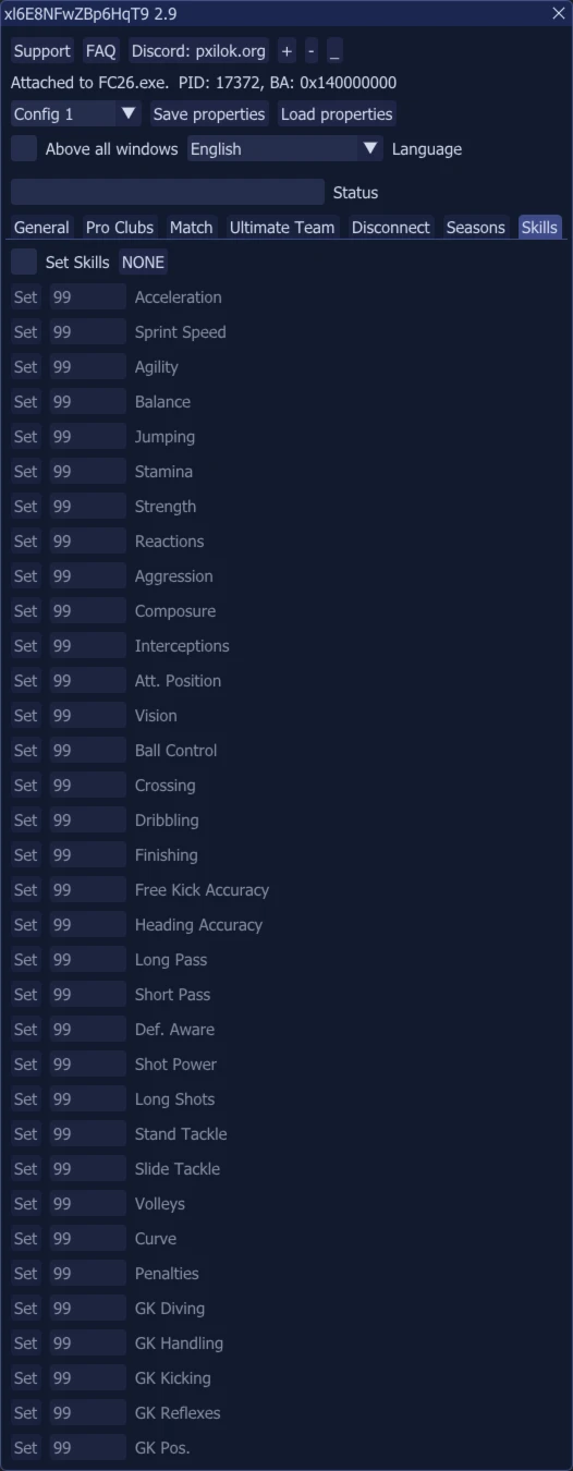 Definir habilidades - expõe características na partida de 0 a 99 (se Ocultar, você verá a classificação original dos jogadores no menu do elenco, mas de qualquer forma seu oponente verá sua classificação de 99 no menu do jogador de desempenho) (não funciona em FUT)