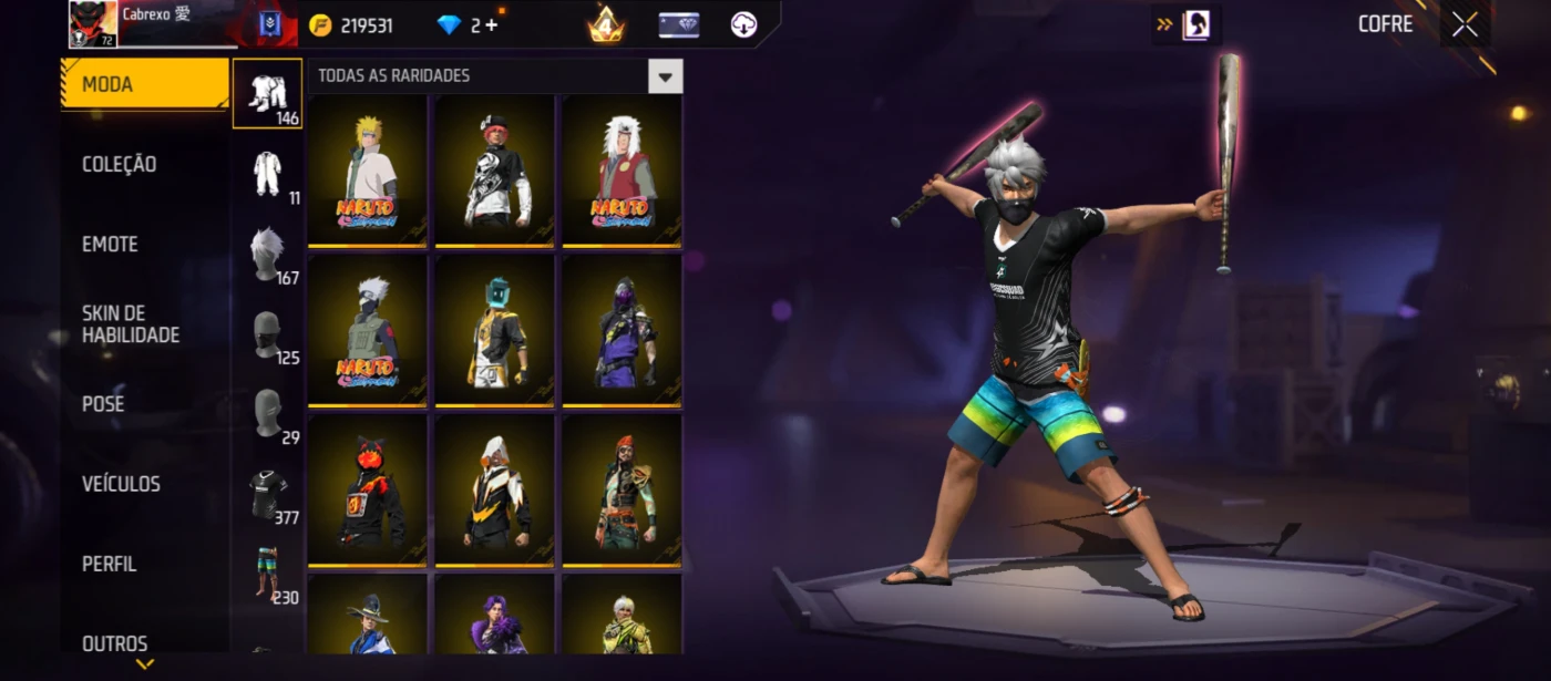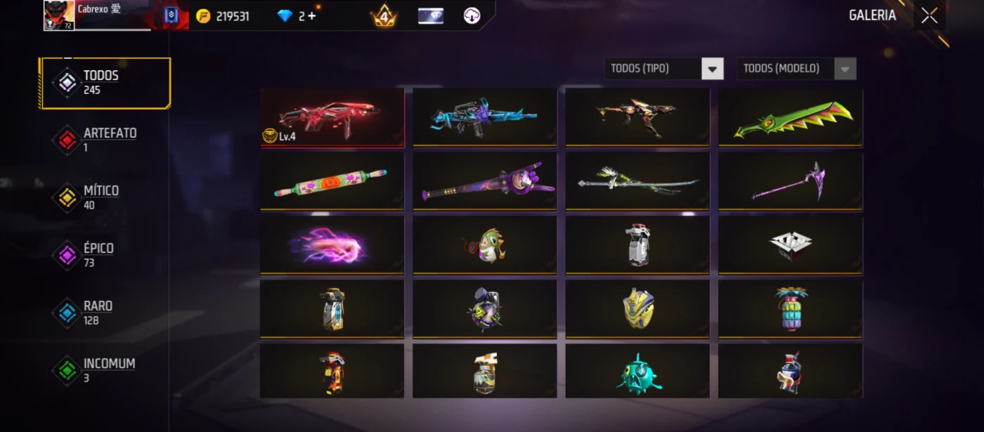 Conta De Ff Gemada Lvl 72 Com Punho, Itens Raros, Etc - Free Fire