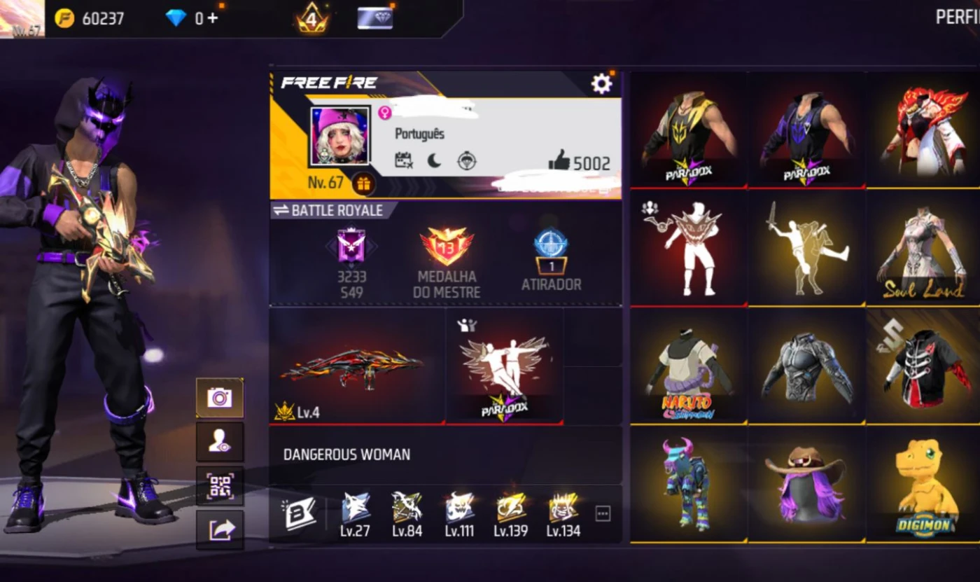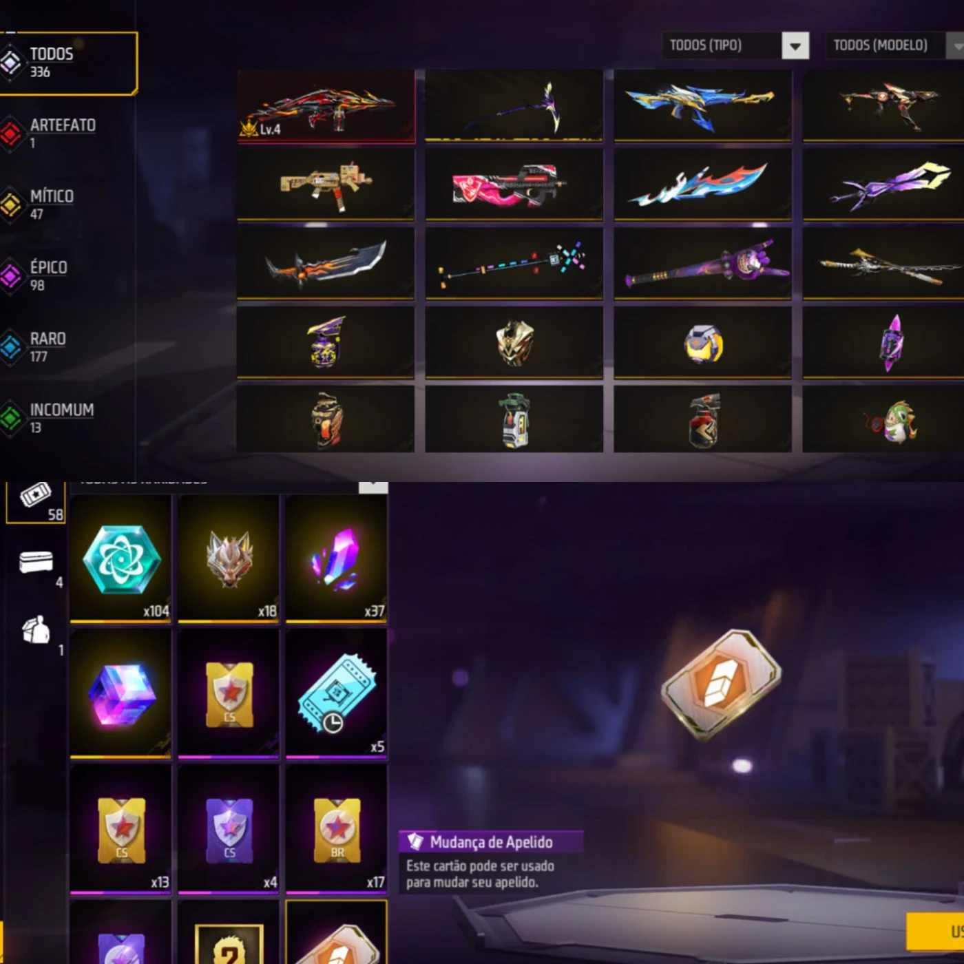 Conta FF com itens do evento Paradoxo, Soul Land,Thompson ev - Free Fire