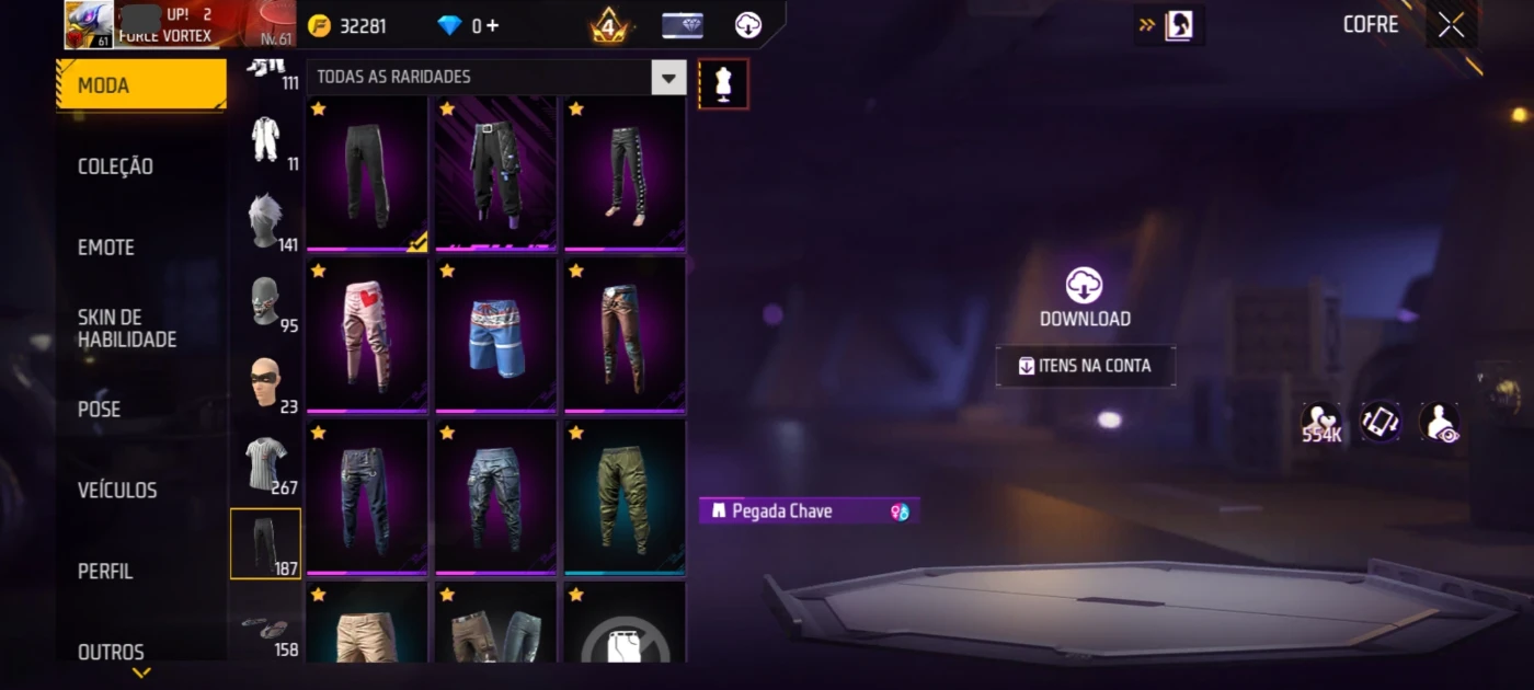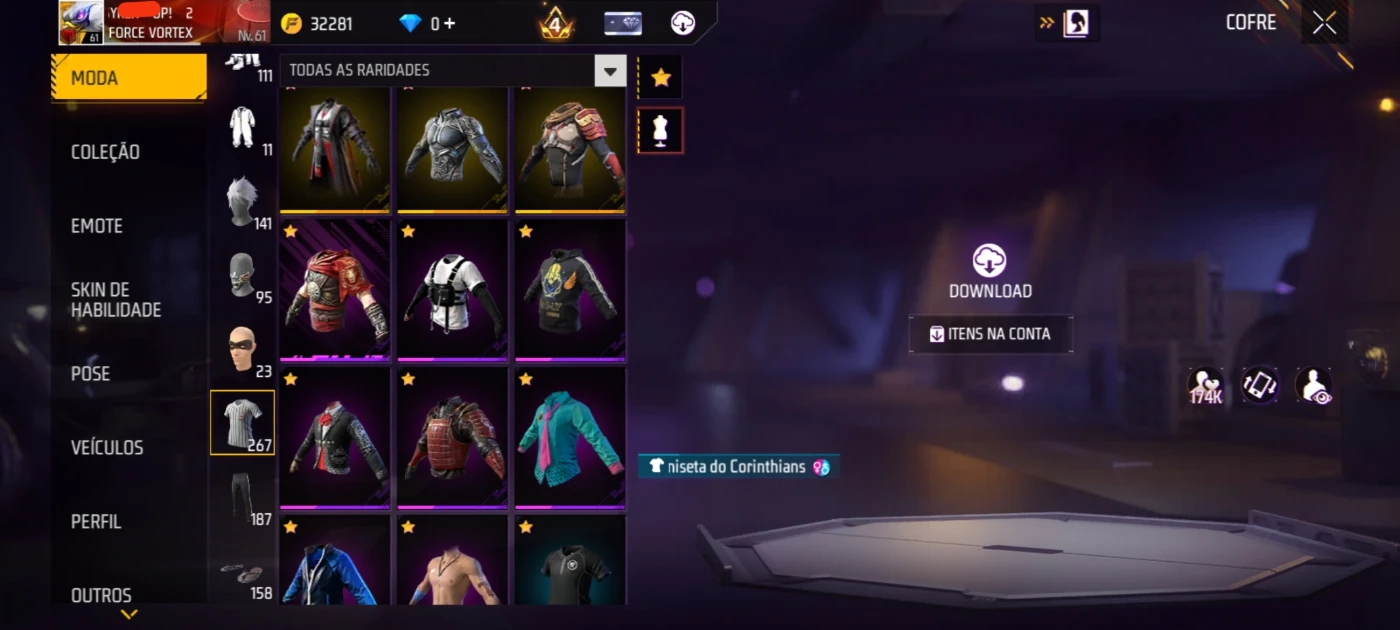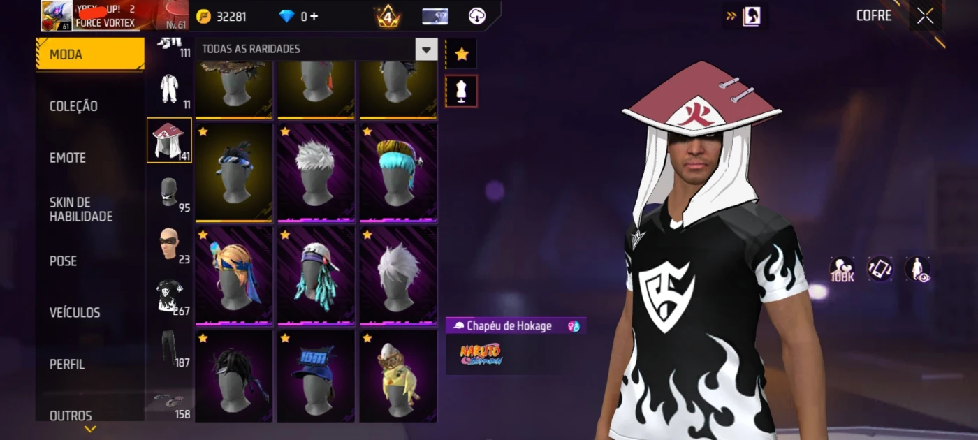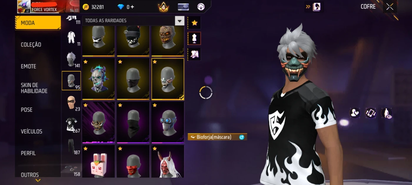 Tem 17 skin de gelos, a conta é via twitter, tem gmail de recuperação no ff.