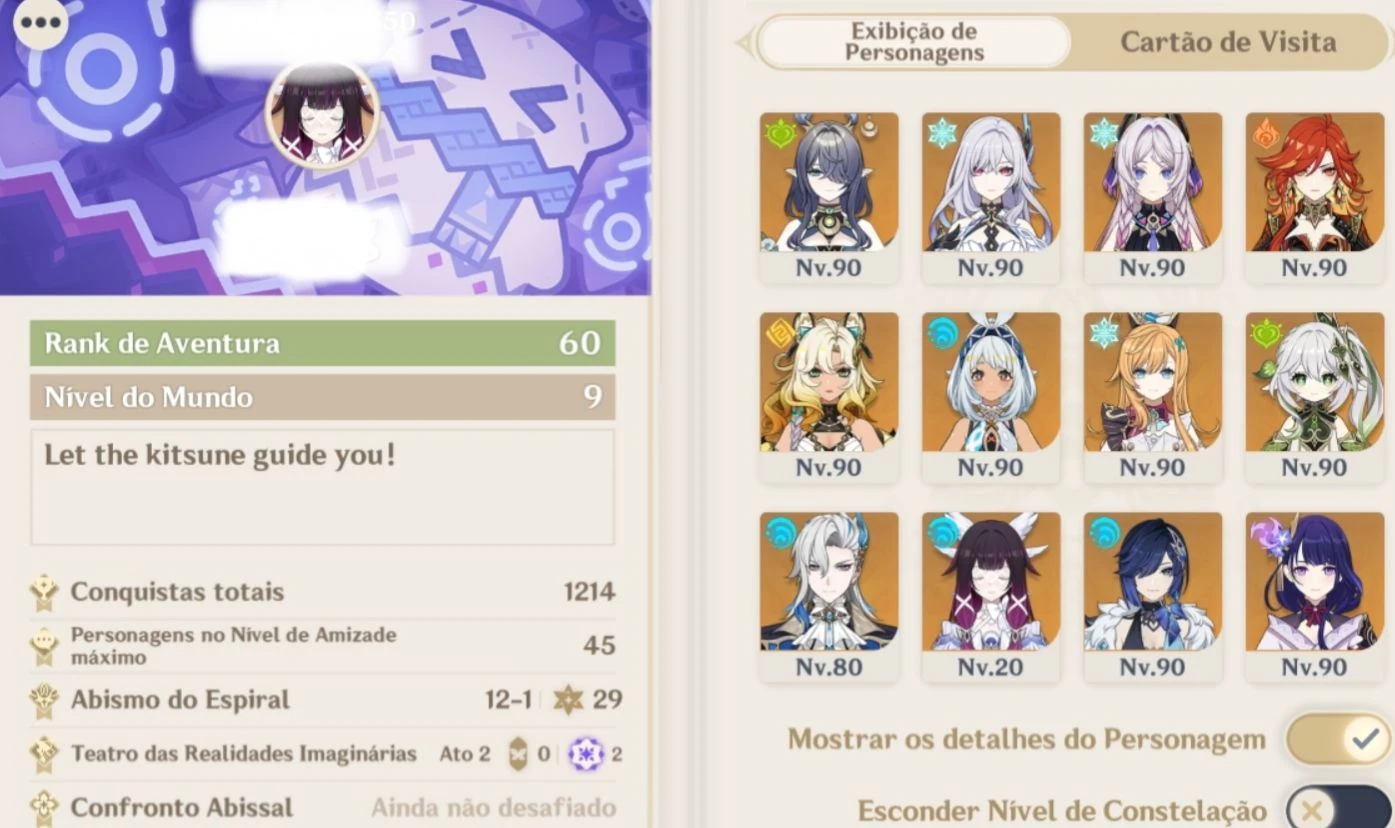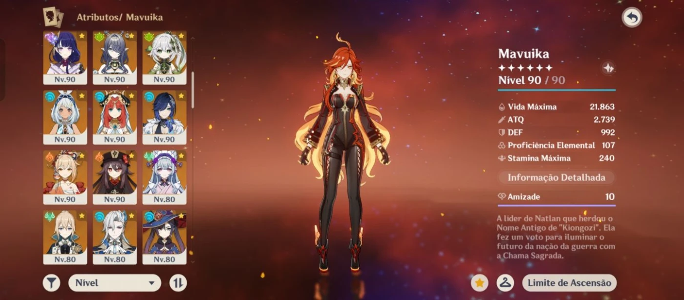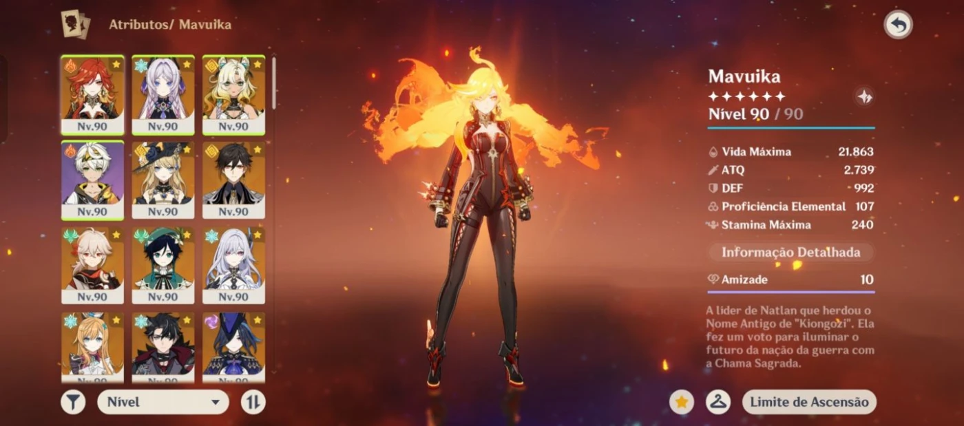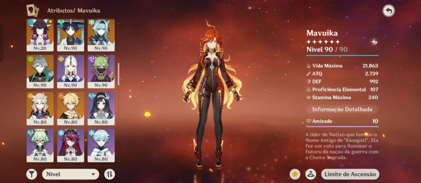 (Organizadas por tipo e nome, com nível e refinamento entre parênteses)
