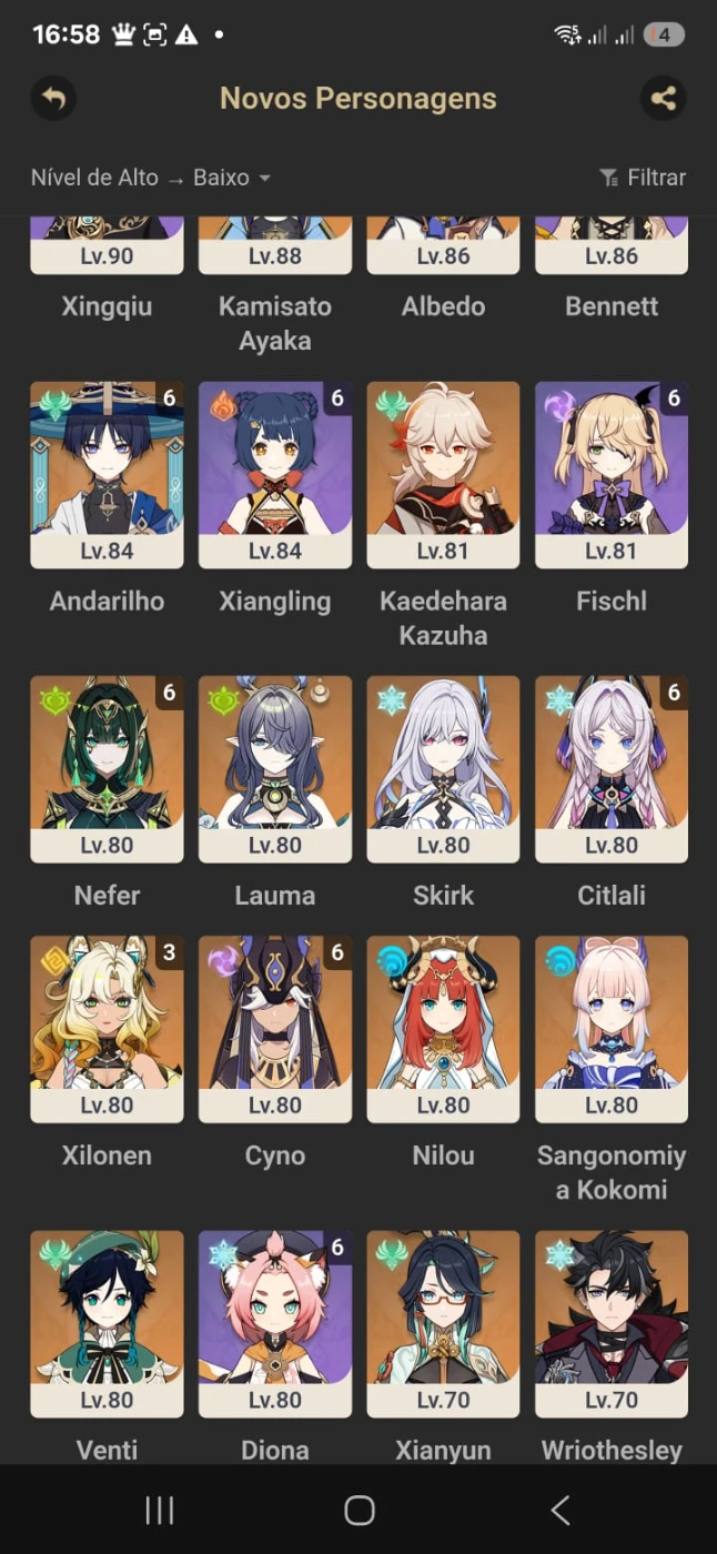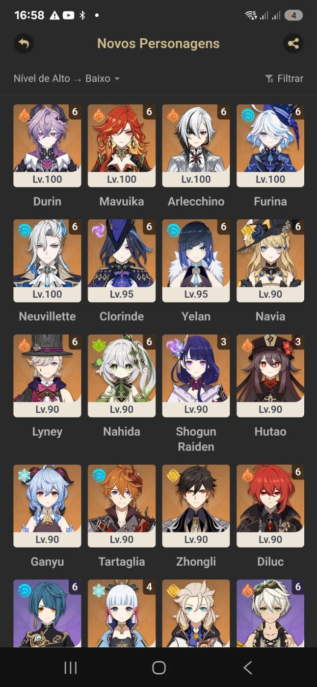 Durin, Mavuika, Arlecchino, Furina, Neuvillette, Clorinde, Yelan, Navia, Lyney, Nahida, Bennett, Xingqiu, Scaramouche, Xiangling, Fischl, Nefer, Citlali, Cyno, Diona, Tighnari, Mona, Qiqi, Jean, Chevreuse, Faruzan, Shinobu, Kujou, Rosaria, Sucrose, Noelle, Beidou, Barbara, Yanfei, Female Traveler, Heizou, Jahoda, Charlotte, Lynette, Kaveh, Mika, Layla, Candace, Dori, Collei.