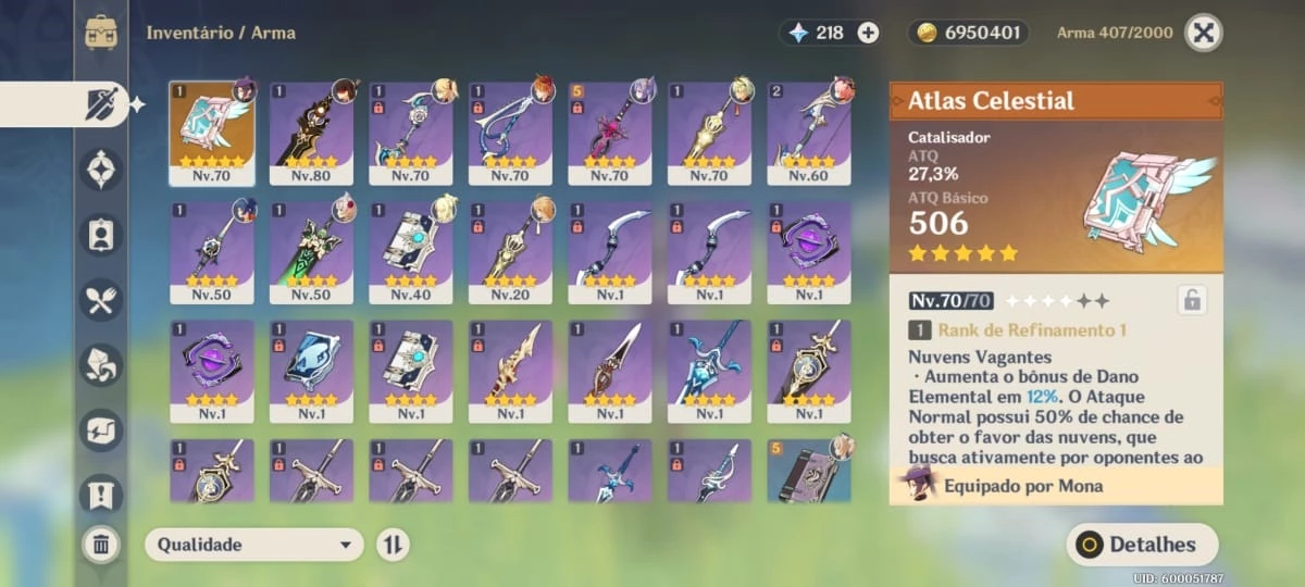 Conta Genshin Impact AR 51 com personagens 5 estrelas!