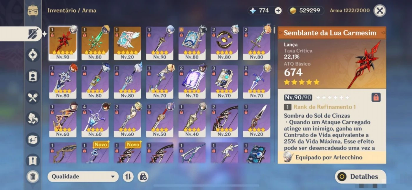 Conta Genshin Ar 56 Arlechinno+Bis, Skirk, Escoffier, Furina