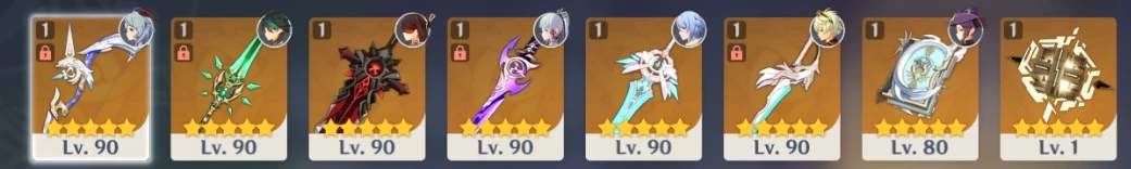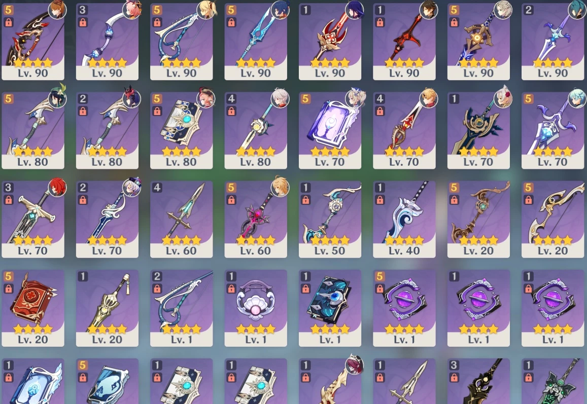 QUASE Todas as Armas de Evento (Com Material para R5), e Todas as Armas de 4 Estrelas.