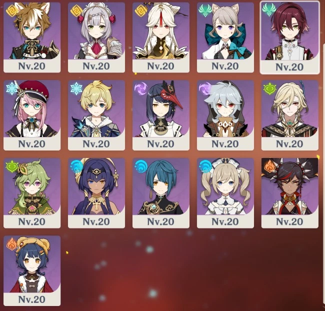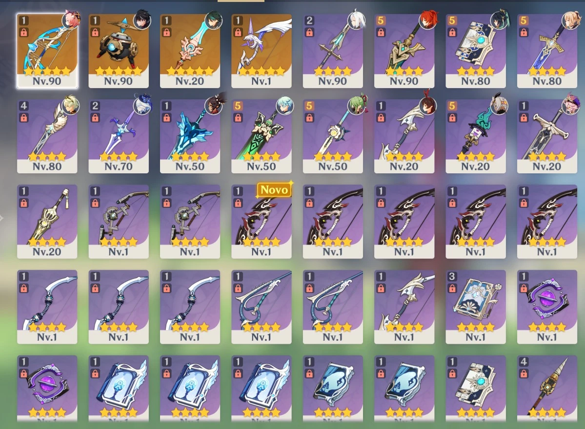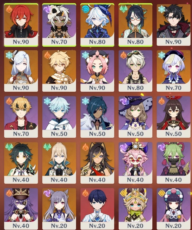 Conta com 10 personagens 5 estrelas sendo, Wriothesley, Shenhe, Dehya, Qeqing, Xiao, Jean, Qiqi, Furina C1, Diluc Com Skin C3, Xianyun.