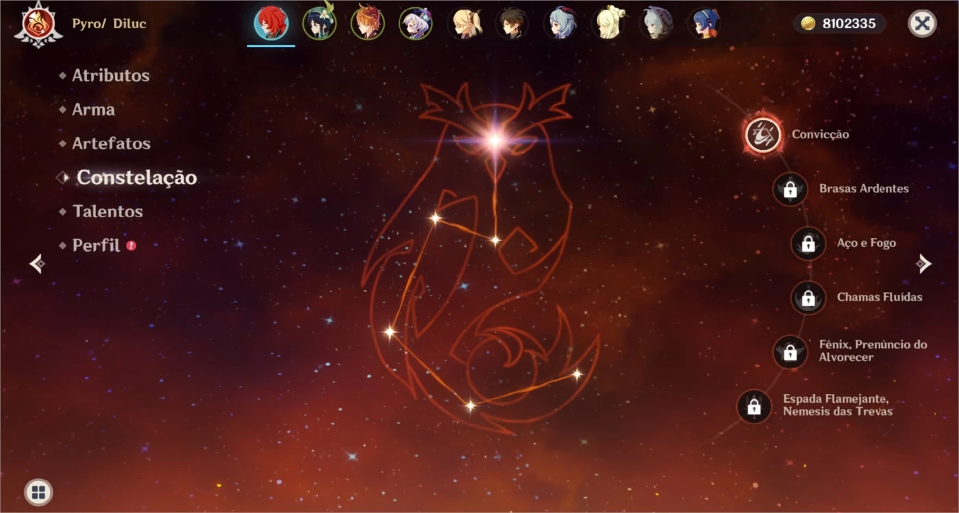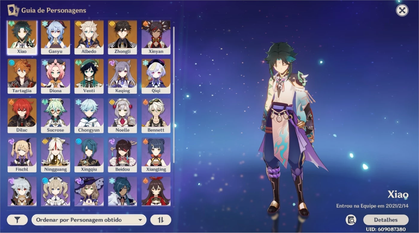 Diluc C1 + Xiao e Quase todos 5 Estrelas
