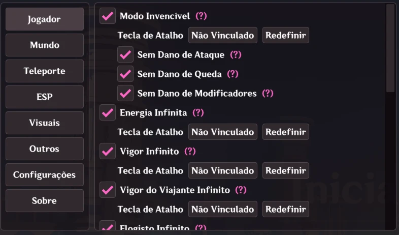(Algumas funções podem varias de acordo com versão do jogo e do programa)
