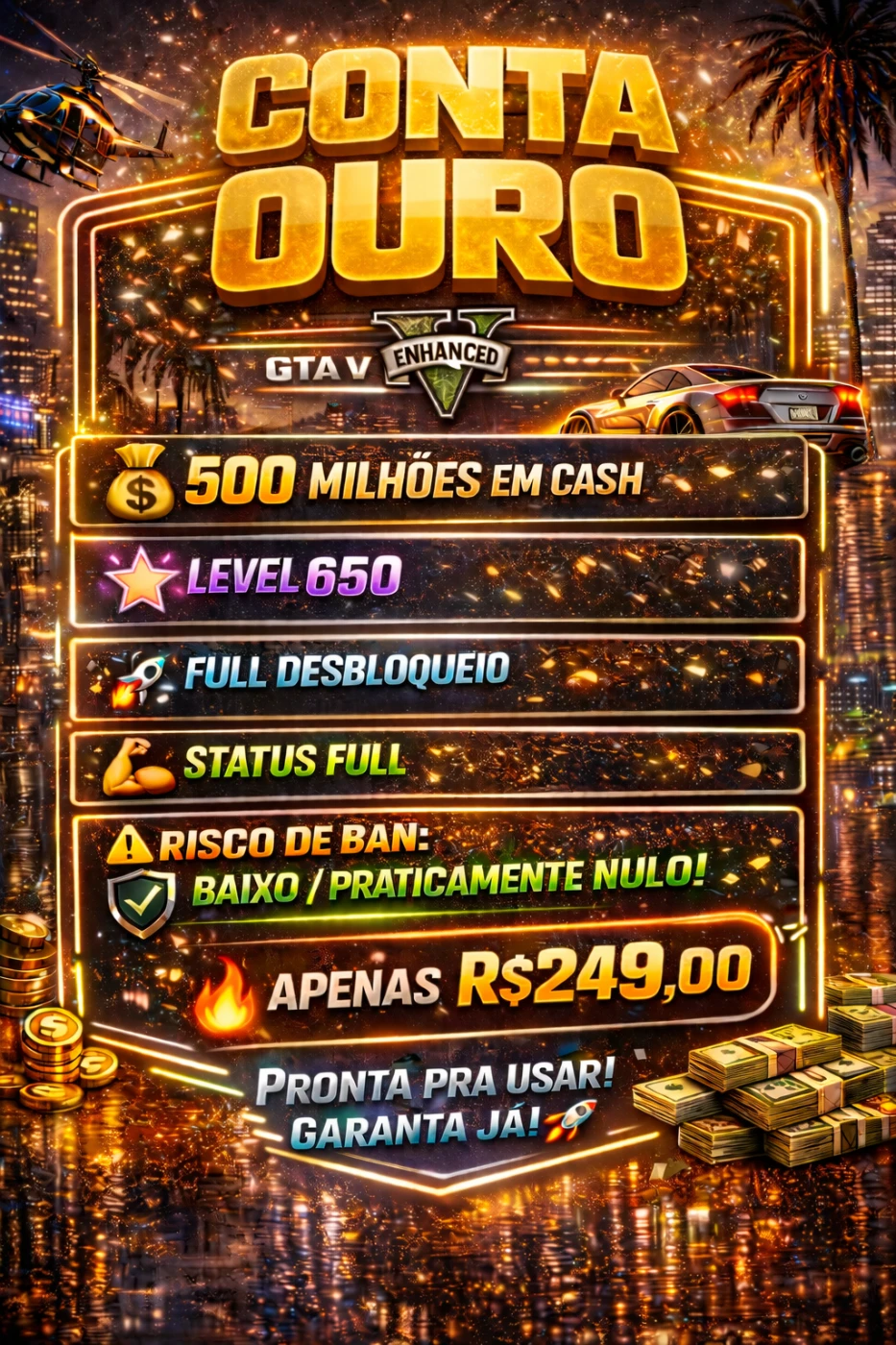 🥇 CONTA OURO — PODER MÁXIMO | GTA V ENHANCED + JOGO INCLUSO