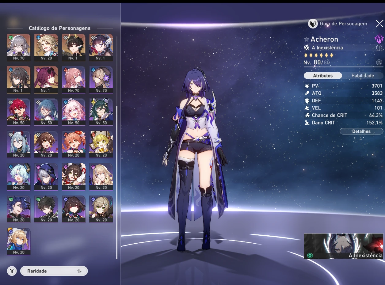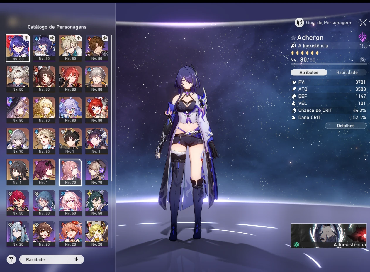 Personagens 4 estrelas da conta so olhar print os eidolons esta entre e0 e e6