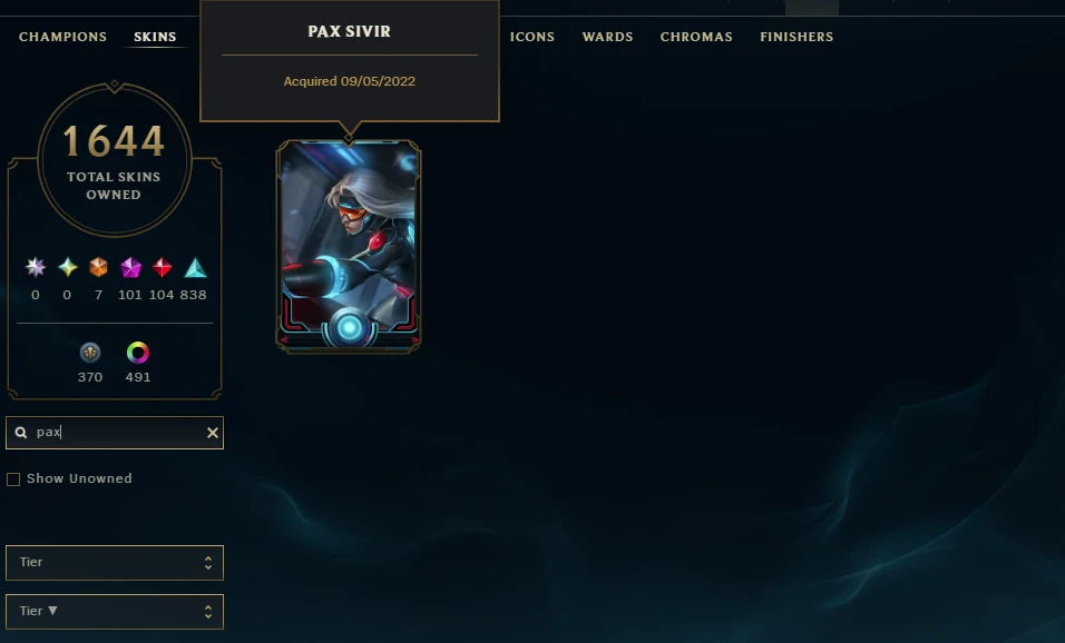 1644 Skins, Pax Sivir, Lvl 361 - Conta De League Of Legends