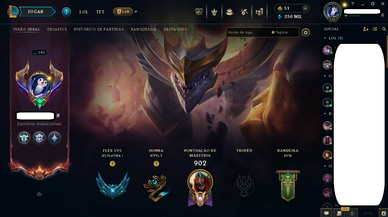 Conta League of Legends desde 2014, completa, estável e com histórico limpo.