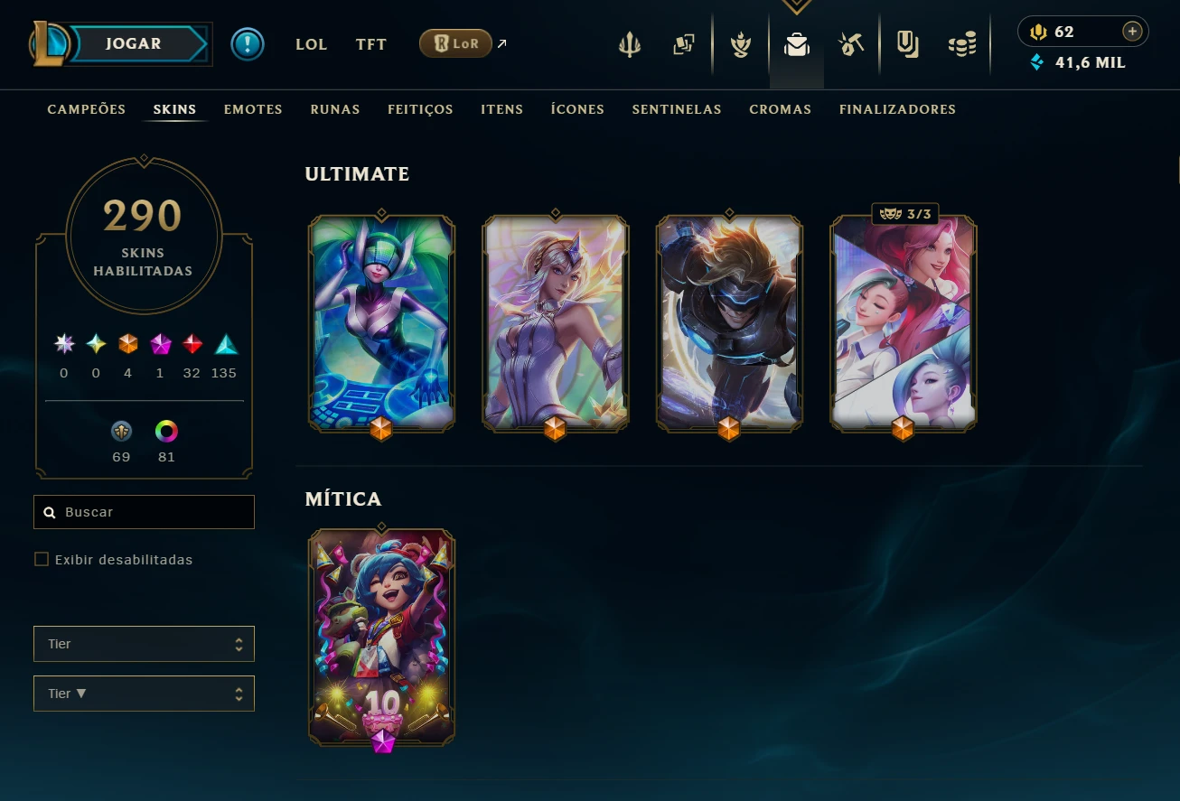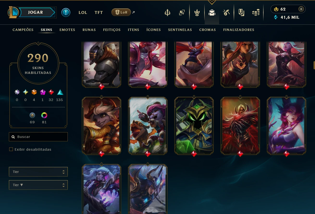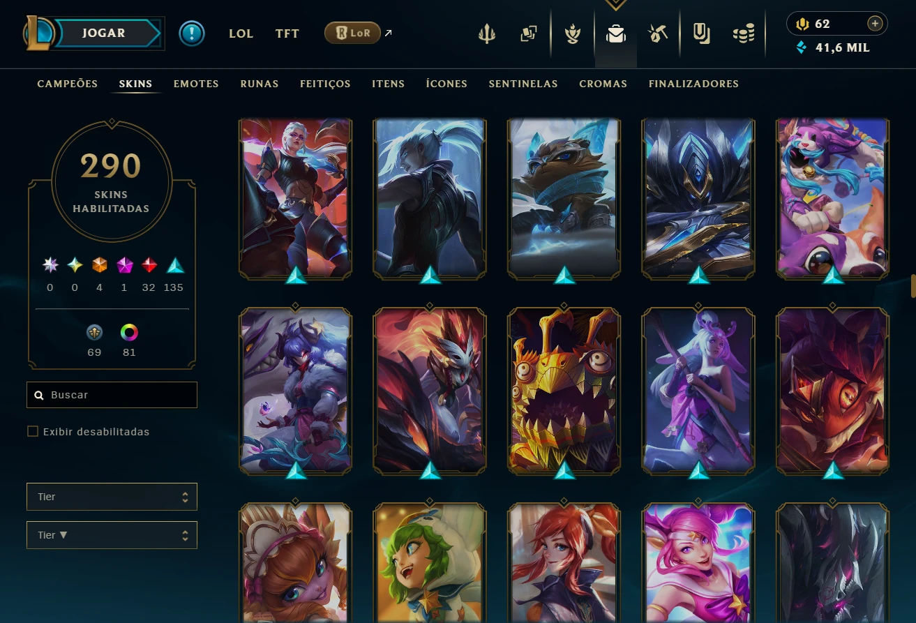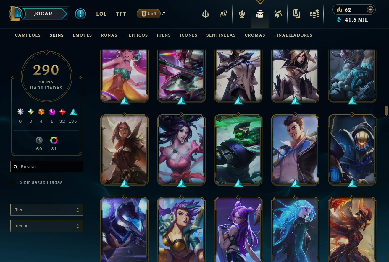 Conta league 290 skins todos campeões - conta no plat