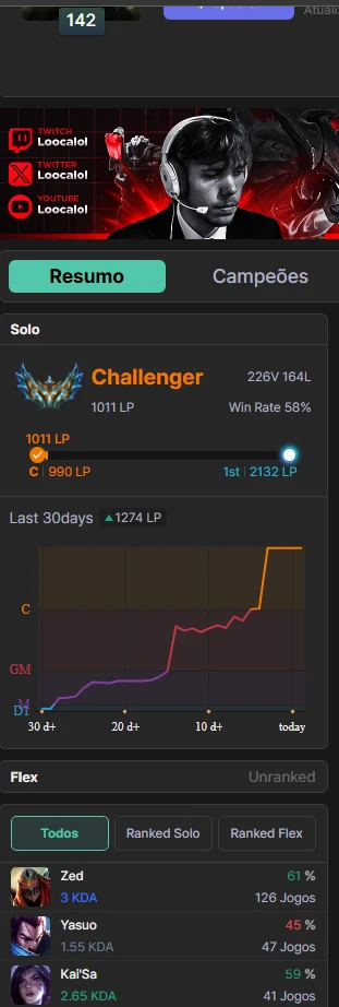Conta challenger 1k pdl SOLOQUEUE - League of Legends LOL