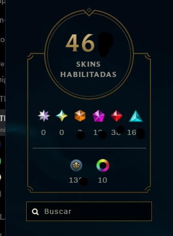 450+ skins, dentre elas 2 skins RARISSIMAS > Rammus Rei e Kayle Juiza, alem de algumas skins prestigio, tem emote surrender at 20,