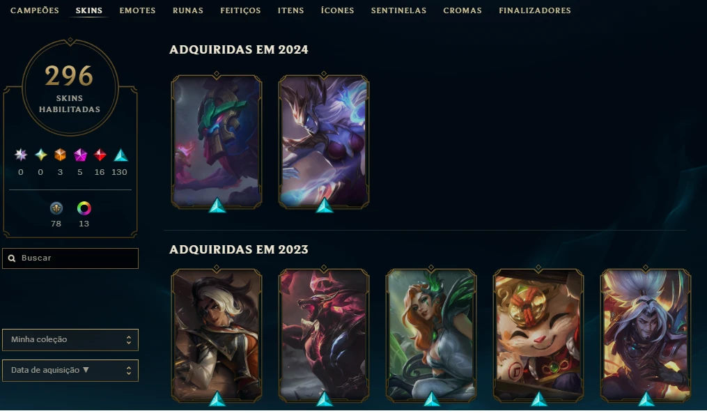 Conta de LOL Nunca BAN 294 skins 38 mil essencias 5576 rp - League of Legends